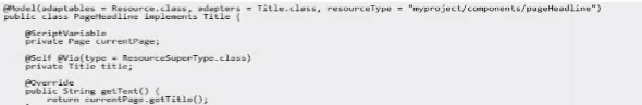 @Model(adaptables = SlingHttpServletRequest.class, adapters = Title.class, resourceType = 'myproject/components/pageHeadline')