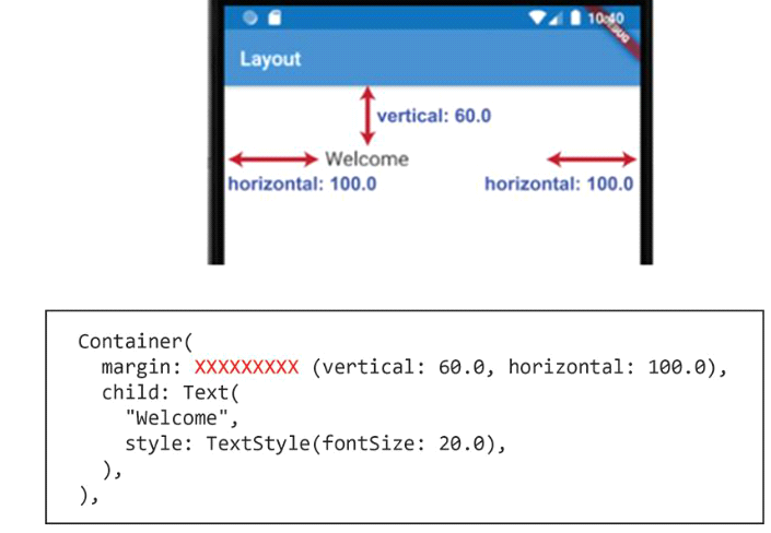 As illustrated in the image in this question, to get the Text value: "Welcome" in this app interface, you may configure the Text widget as a child widget of the Container widget in the following code: