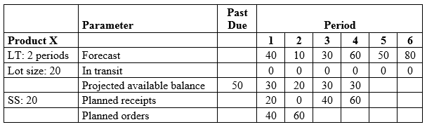 How many units of product X should be planned to satisfy the demand for period 6?
