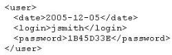 You are working with an Authentication service that submits user credentials for authentication purposes. Atypical XML document passed to the service looks like this: