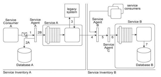 Service Consumer A sends a request message with an authentication token to Service A, but before the message reaches Service A, it is intercepted by Service Agent A (1). Service Agent A validates the security credentials and also validates whether the message is compliant with Security Policy A .If either validation fails, Service Agent A rejects the request message and writes an error log to Database A (2A). If both validations succeed, the request message is sent to Service A (2B). Service A retrieves additional data from a legacy system (3) and then submits a request message to Service B Before arriving at Service B, the request message is intercepted by Service Agent B (4) which validates its compliance with Security Policy SIB then Service Agent C (5) which validates its compliance with Security Policy B .If either of these validations fails, an error message is sent back to Service A .that then forwards it to Service Agent A so that it the error can be logged in Database A (2A). If both validations succeed, the request message is sent to Service B (6). Service B subsequently stores the data from the message in Database B (7). Service A and Service Agent A reside in Service Inventory A .Service B and Service Agents B and C reside in Service Inventory B .Security Policy SIB is used by all services that reside in Service Inventory B .Service B can also be invoked by other service from within Service Inventory B .Request messages sent by these service consumers must also be compliant with Security Policies SIB and B .New services are being planned for Service Inventory A .To accommodate service inventory-wide security requirements, a new security policy (Security Policy SIA) has been created. Compliance to Security Policy SIA will be required by all services within Service Inventory A .Some parts of Security Policy A and Security Policy SIB are redundant with Security Policy SIA .How can the Policy Centralization pattern be correctly applied to Service Inventory A without changing the message exchange requirements of the service composition?