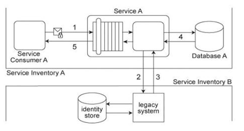 Service Consumer A submits a request message with security credentials to Service A (1). The identity store that Service A needs to use in order to authenticate the security credentials can only be accessed via a legacy system that resides in a different service inventory. Therefore, to authenticate Service Consumer A, Service A must first forward the security credentials to the legacy system (2). The legacy system then returns the requested identity to Service A (3). Service A authenticates Service Consumer A against the identity received from the legacy system. If the authentication is successful, Service A retrieves the requested data from Database A (4), and returns the data in a response message sent back to Service Consumer A (5). Service A belongs to Service Inventory A which further belongs to Security Domain A and the legacy system belongs to Service Inventory B which further belongs to Security Domain B .(The legacy system is encapsulated by other services within Service Inventory B, which are not shown in the diagram.) These two security domains trust each other. Communication between Service A and the legacy system is kept confidential using transport-layer security. It was recently discovered that a malicious attacker, posing as Service Consumer A, has been accessing Service A .An investigation revealed that these attacks occurred because security credentials supplied by Service Consumer A were transmitted in plaintext. Furthermore, vulnerabilities to replay attacks and malicious intermediaries have been detected. Which of the following statements describes a solution that can counter these types of attacks?