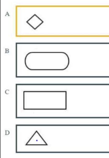 Option B, which is the oval or rounded rectangle shape, indicates a termination point on a flowchart. This symbol is typically used to represent the start or end of a process in flowchart diagrams. Reference: