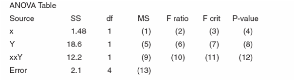 A pharmaceutical manufacturer is designing an experiment to test four different capsule ingredients designed to reduce dissolution time. Each ingredient will be tested at 10 milligrams and 40 milligrams. A full factorial design is used with five replications per run. The number of levels, factors and runs is, respectively: