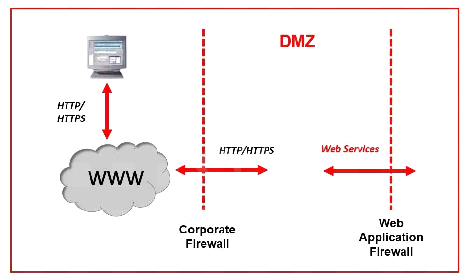 Refer to the exhibit. A customer is using Contact Center Multimedia (CCMM) to provide Web Services or integrating Web Chat with their Contact Center. They have created a DMZ to protect the Avaya Aura Contact Center (AACC) server and the Corporate Web Server by deploying a Corporate Firewall and a Web Application Firewall. What is the recommended placement of the AACC Voice and Multimedia server in relation to the Corporate Web Server where the customer facing Web Chat Application resides?