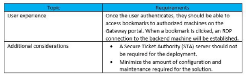 Scenario: A Citrix Architect needs to design a new Citrix ADC Gateway deployment to provide secure RDP access to backend Windows machines.