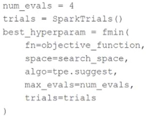 A data scientist is using the following code block to tune hyperparameters for a machine learning model: