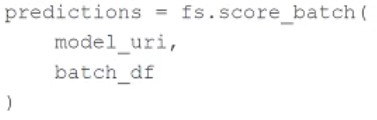 The machine learning engineer runs the following code block to perform inference on batch_df using the linear regression model at model_uri: