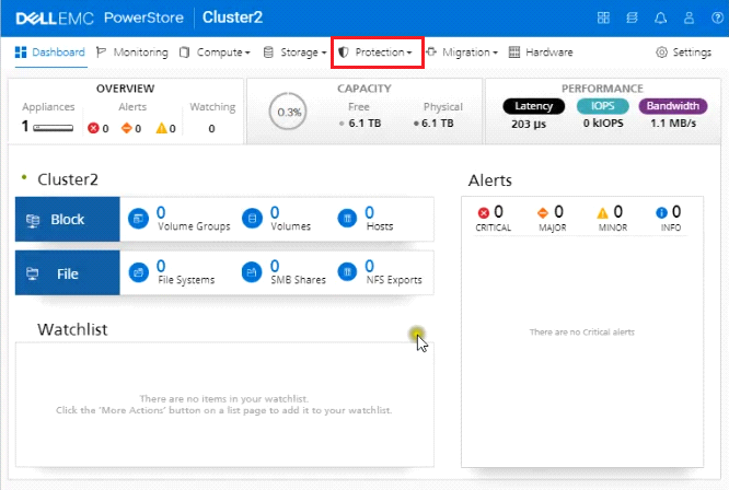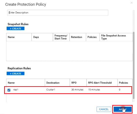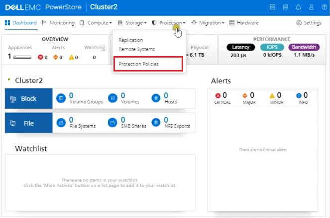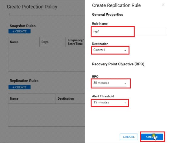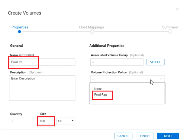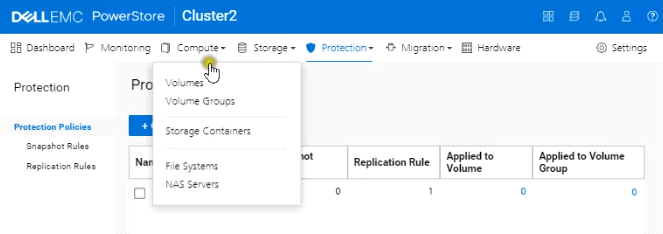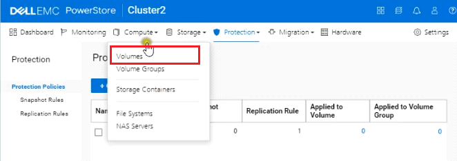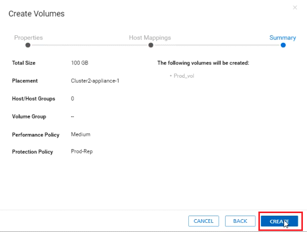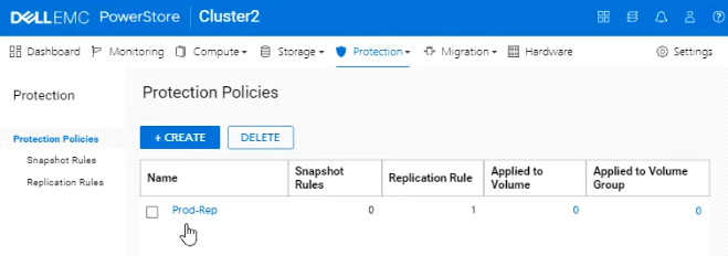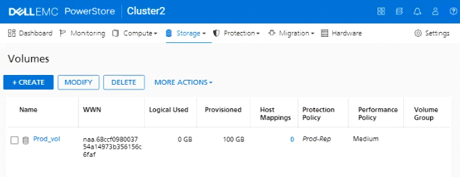 In a PowerStore T source cluster, create a 100GB volume with name "Prod_vol" and set a protection policy to replicate the volume with RPO 30 minutes to a destination cluster. The destination cluster is already configured. When you have finished using the simulator, click Next.