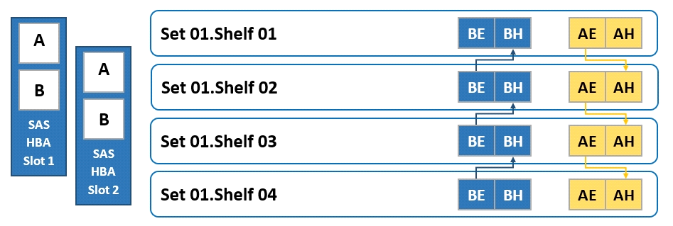 To which shelf and port should SAS HBA slot 1 port B be connected?
