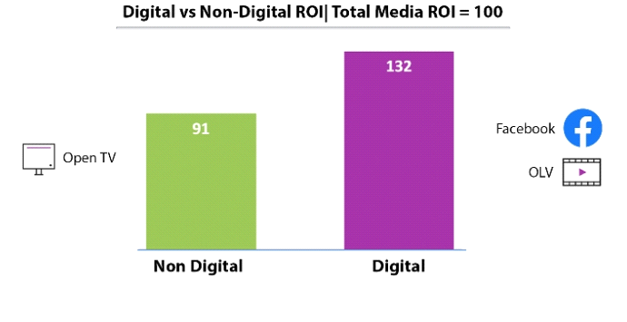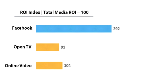 A CPG advertiser wants to determine how much ROI is provided by Facebook compared to other channels, like TV and online publishers. The advertiser runs a digita deep dive marketing mix modeling.