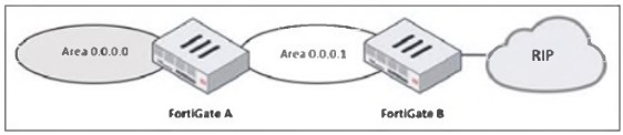 FortiGate B is in OSPF Area 0.0.0.1 and is connected to an RIP network.
