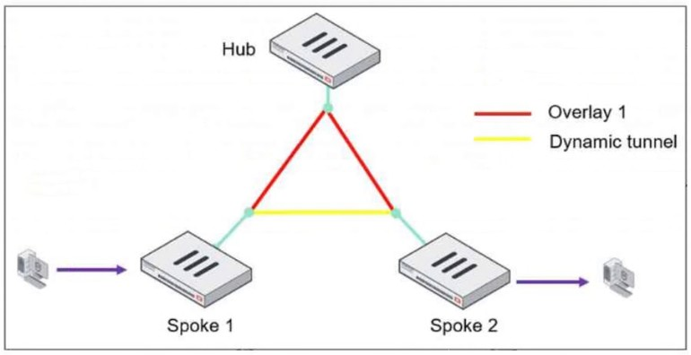 The client behind Spoke-1 generates traffic to the device located behind Spoke-2.