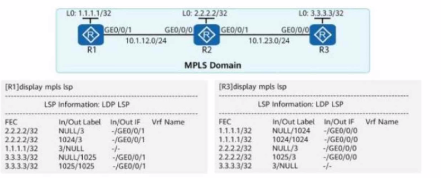 The figure shows the LSP information of R1 and R3 on an MPLS network. An administrator runs the ping -a 1.1.1.1 3.3.3.3 command on R1. Given this, which of the following statements is true?