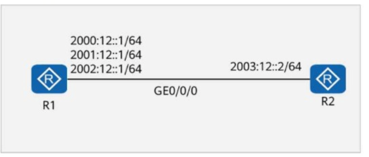OSPFv3 runs on R1 and R2, and the IPv6 addresses configured for the interfaces are marked in the figure.