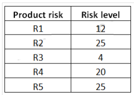 Assume that you are the Test Manager for a small banking application development project. You have decided to adopt a risk-based testing strategy and 5 product risks (R1, R2, R3, R4, and R5) have been identified during the quality risk analysis. The following table shows the risk level associated to these product risks (higher numbers mean higher risk):
