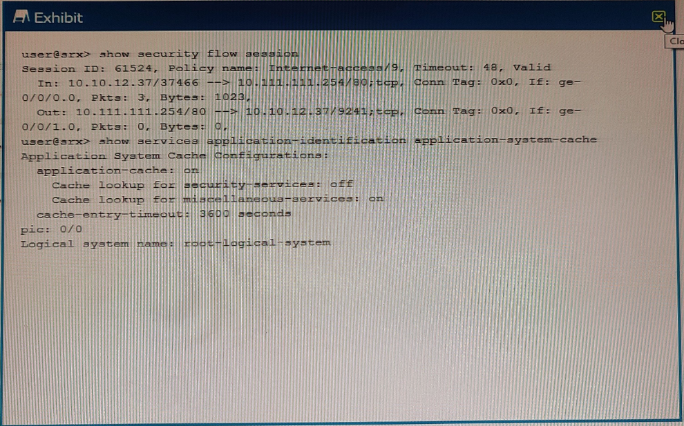 Prepare for the Juniper Security, Specialist Exam exam with our extensive collection of questions and answers. These practice Q&A are updated according to the latest syllabus, providing you with the tools needed to review and test your knowledge.