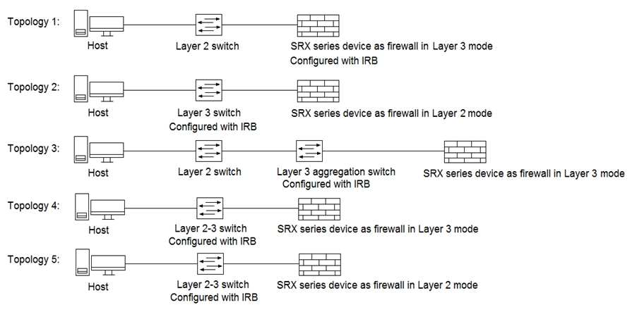 Referring to the exhibit, which three topologies are supported by Policy Enforcer? (Choose three.)