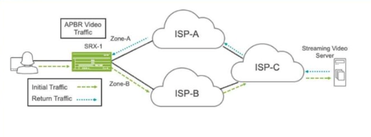 Referring to the exhibit, a default static route on SRX-1 sends all traffic to ISP-