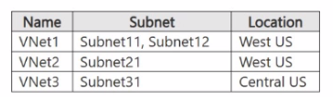 You have an Azure subscription that contains the virtual networks shown in the following table.