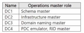 You have an Active Directory Domain Services (AD DS) domain that contains the domain controllers shown in the following table.