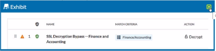Verify that the correct category (financial and accounting) is selected in the policy, and ensure that the action is set to ''Bypass.''