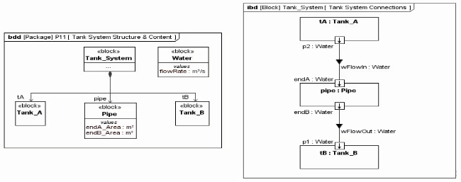 A system engineer has created the following model of a tank system composed of two tanks and a pipe connecting them: