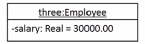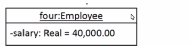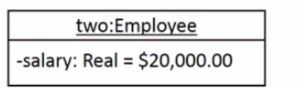 After examining each option, the correct answer is D. Option D, because the instance four:Employee has the highest value properly assigned to a salary slot according to the standard UML notation. However, there's a point to be clarified: while UML does not specify formatting of numbers with commas for thousands or currency symbols, it does accept scientific notation. So, if we were strictly interpreting the values as real numbers, Option E would represent the highest numerical value. But considering proper UML formatting and assuming the intent is to use standard decimal notation without currency symbols or commas, Option D is the best answer.