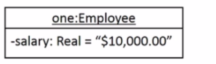A) -salary: Real = ''$10,000.00'' - This uses a string representation of the number, which is generally not how numerical values are assigned in UML, especially with the explicit type Real.