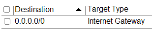 The Route table attached to the Public subnet is shown below. You can establish an SSH connection into the compute instance from the internet. However, you are not able to connect to the web server using your web browser.