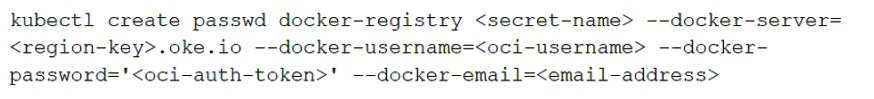 The --docker-password='<oci-auth-token>' specifies the OCI auth token, which acts as a password for authentication.