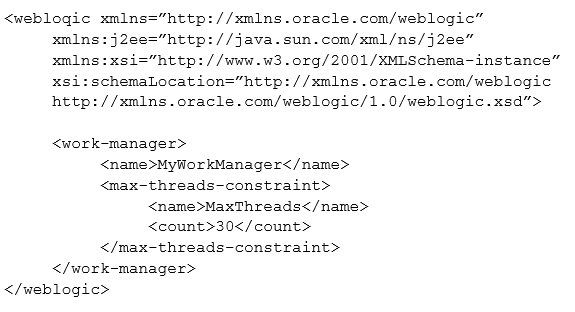 A Web Module needs specific tuning. The Development team fine tunes the module in the deployment descriptor (weblogic.xml) as follows: