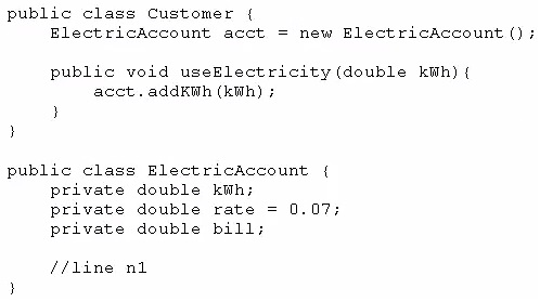 How should you write methods in the ElectricAccount class at line n1 so that the member variable bill is always equal to the value of the member variable kwh multiplied by the member variable rate?