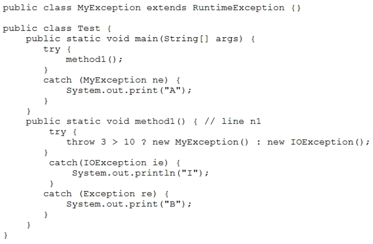 Given this code for the classes MyException and Test: