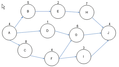 You work as the project manager for Blue Well Inc. You are working with your project team to schedule the days the project work will take place. You have created a project network diagram as shown in the figure: