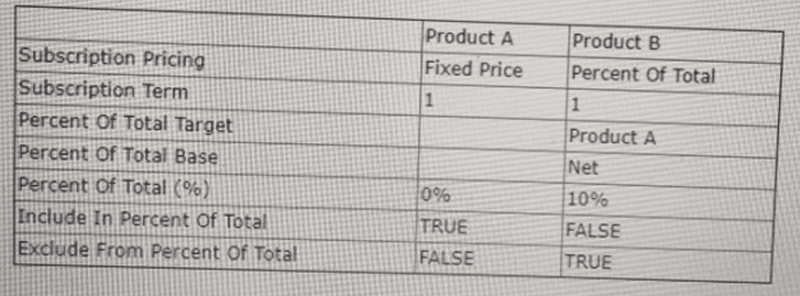 Universal Containers offers a maintenance subscription, Product B, that is based on the price of a separate platform license subscription, Product