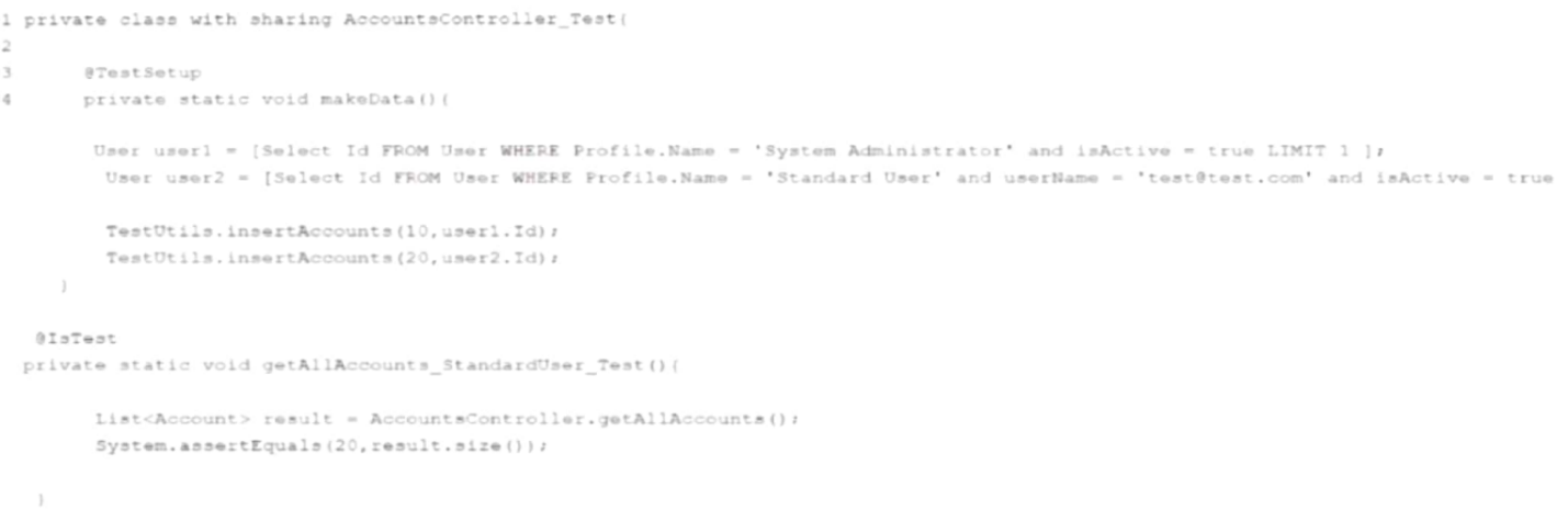 Which change should the developer implement in the Apex test method to ensure the test method executes successfully?
