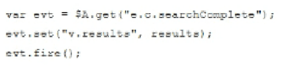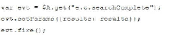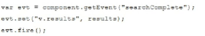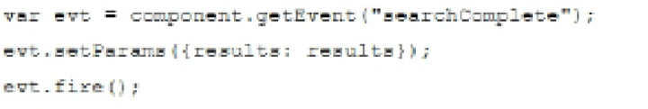 The correct code to fire the event when the search has completed in a Lightning component is option B. $A.get('e.c.searchComplete') is the syntax used to get the event, setParams is used to set the parameters, and fire is used to dispatch the event.