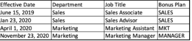 Due to some company reorganizations and rapid career advancement, an employee at your client has the following data in Employee Central: On the Variable Pay template, there is a custom string