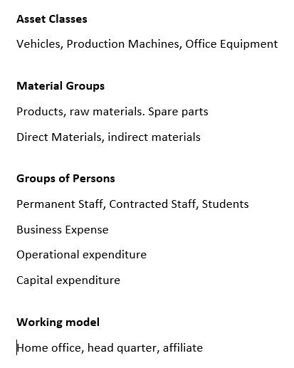 C . Groups of Persons/Business Expense: This includes different categories of personnel such as permanent staff, contracted staff, and students. It also encompasses different types of expenses like operational expenditure and capital expenditure, which are crucial considerations for financial management and human resource management applications.